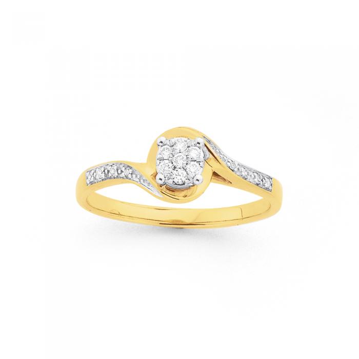 9ct Gold Diamond Cluster Swirl Ring