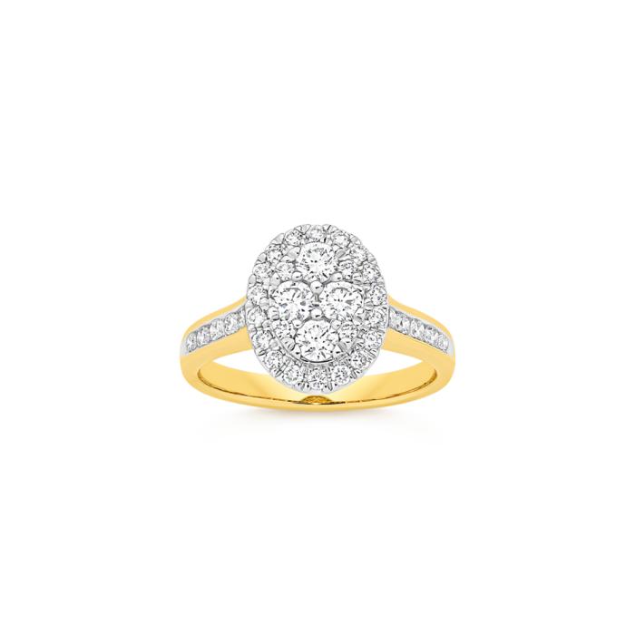 Alora 9ct Gold Lab Grown Diamond Oval Shape Cluster Shoulder Ring Total Weight = 1.00ct Size O
