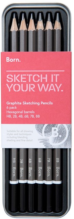 • Includes HB, 2B, 4B, 6B, 7B and 8B pencils• Includes tinBO6SKEGR