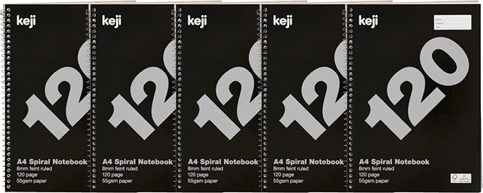 Keji 5-Pack A4 120 Page Spiral Notebooks^