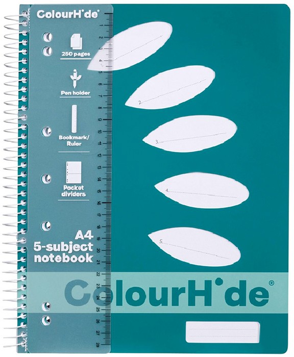 ColourHide A4 250 page 5 Subject Notebook - Teal