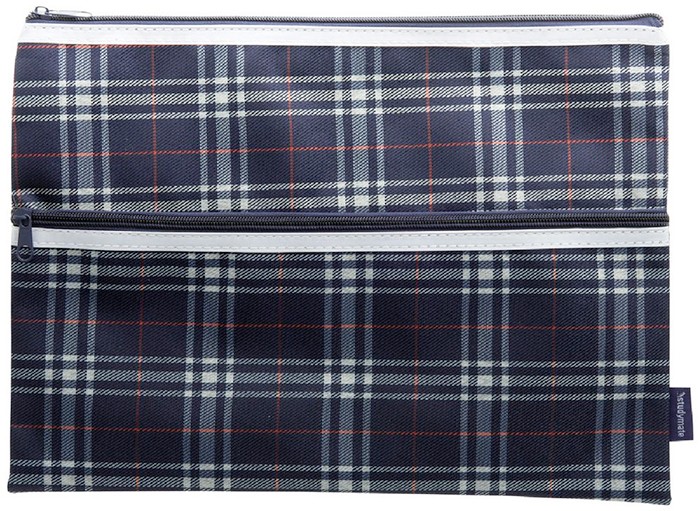 Studymate Large Blue Tartan Twin Zip Pencil Case