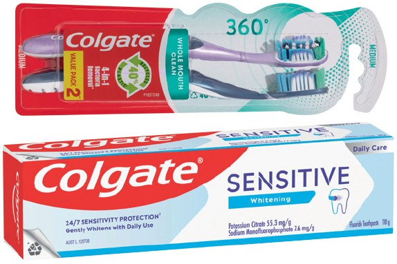 Colgate Sensitive Toothpaste 110g, 360° Toothbrush 2 Pack or Plax Mouthwash 500mL Selected Varieties*