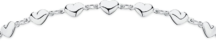 Sterling Silver 17+3cm Domed Heart Link Bracelet - Made In Italy