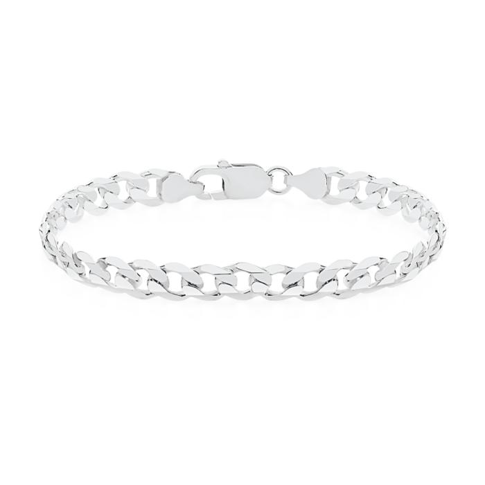 Sterling Silver 21cm Solid Bevelled Oval Curb Bracelet. Approximate Dimensions - 21cm Length, 7mm Width (180 Gauge).