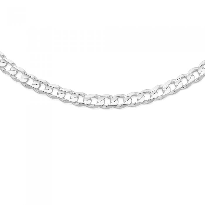 Sterling Silver 55cm Solid Bevelled Curb Chain. Approximate Dimensions - 55cm Length, 7mm Width (180 Gauge).
