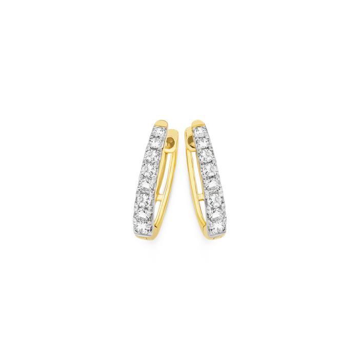 Alora 10ct Gold Lab Grown Diamond Claw Set Huggie Earrings Total Weight = .20ct. External Size = Approx. 12mm x 2mm.