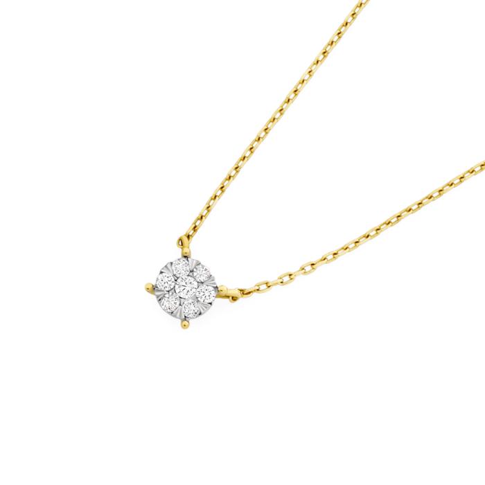 9ct Gold Diamond Small Cluster Necklet with 45cm 9ct Gold Chain8987005