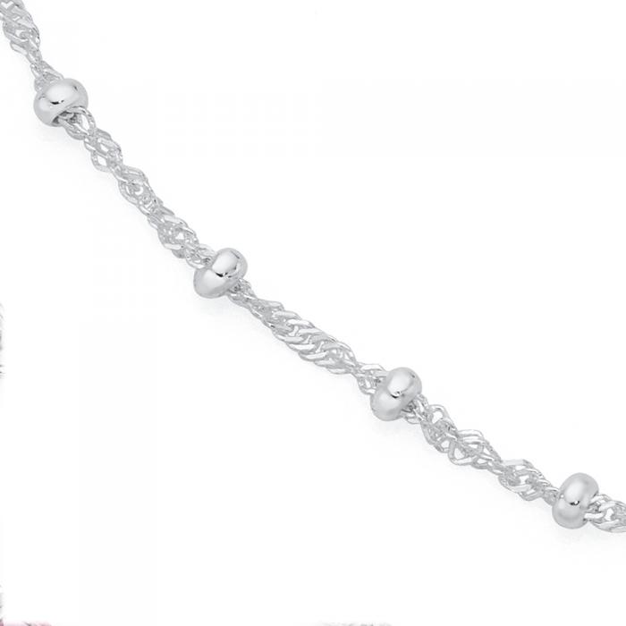Italian Made Sterling Silver 25cm Fine Twist & Ball Anklet 1959000