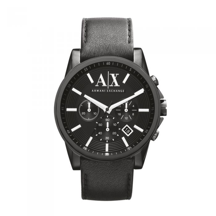 This watch features an all black stainless steel case, leather strap and brushed dial, with silver tone indixes shining through like stars in the night.