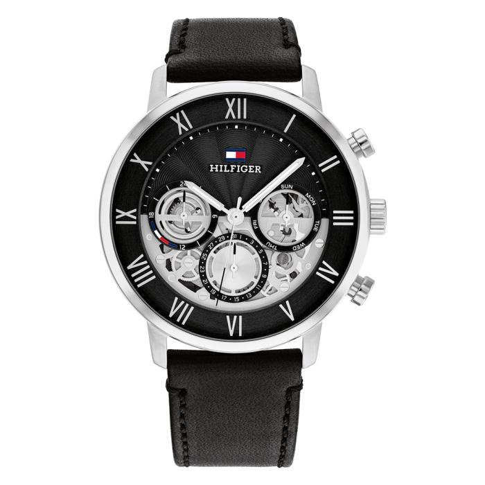 Made for the modern man who appreciates detail. Roman numerals surround the multi-layered open-heart movement, while the new Hilfiger branding keeps it classic.