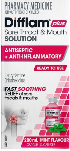 Difflam Plus Sore Throat & Mouth Solution + Antiseptic & Anti- Inflammatory 200ml