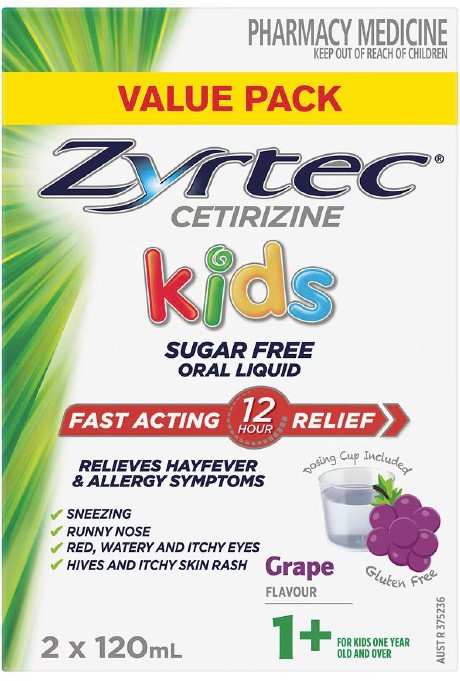 Zyrtec Kids Fast Acting Allergy & Hayfever Relief Grape Flavour Oral Liquid 2 X 120ml