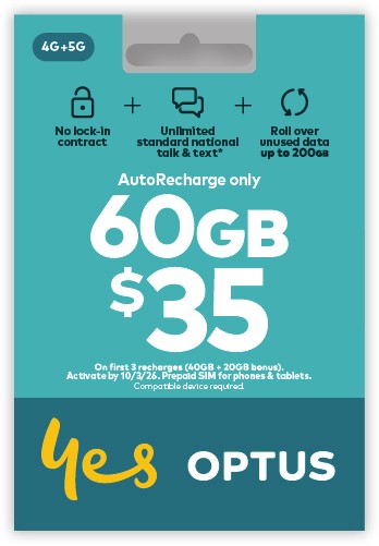 Optus $35 AutoRecharge only SIM Starter Kit offer ends 13/1/26.