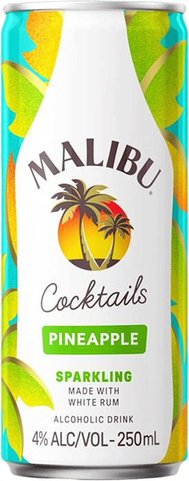 Coconut and Pineapple Flavour Sparkling Mixed Drink with Caribbean Rum. A delightful blend of Caribbean rum and sparkling fresh pineapple. Well-balanced and tropical, with a slight sweetness and the distinctive character of Malibu Caribbean rum. Malibu Rum & Pineapple cans are ideal for any occasion, whether you're having a summer BBQ at home, partying at a festival, or having a picnic in the park.We've combined our classic Malibu Coconut flavoured rum with refreshing sparkling pineapple to create these cans, perfect when the sun's setting and the good times are flowing. Recreate those holiday feels all year round and introduce a bit of sunshine to your drink! Malibu's story goes back to 1982 when the creators were looking for a way to simplify the Pina Colada. The Caribbean rum base is produced at the West Indies Rum Distillery, a world renowned distillery founded in 1893. Every drop is filled with sun, music, beaches, parties, new friends, love, and adventures. Malibu is the world's favourite Coconut Rum, so it's no surprise that you'll find it in bars worldwide. As much Malibu loves the Pina Colada, there's so much more you can make with Malibu Coconut, and their other flavours and cans. Check out the Malibu Instagram @malibu_rum or website to get some cocktail inspiration and take your hosting game to the next level!