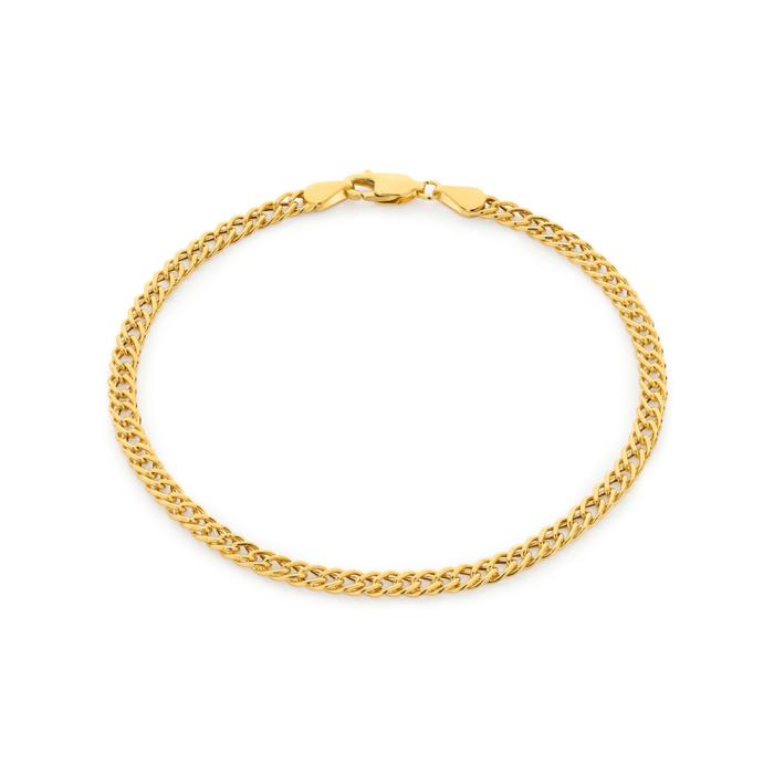 Italian Made 9ct Gold 19cm Hollow Diamond-Cut Double Curb Bracelet. Approximate Dimensions - 60 Gauge. This 9ct gold bracelet is hollow. Hollow Jewellery pieces are considered
