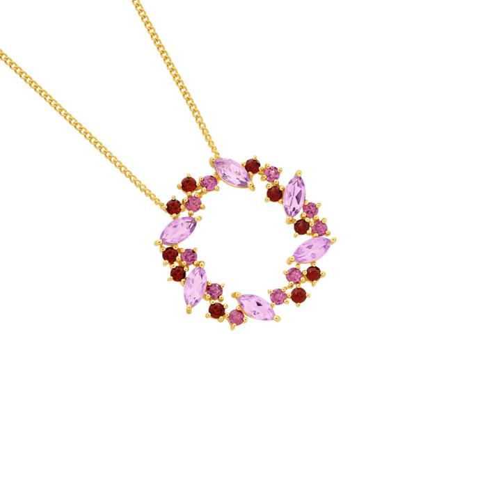 9ct Gold Amethyst, Garnet & Rhodolite Garnet Wreath Slider Pendant