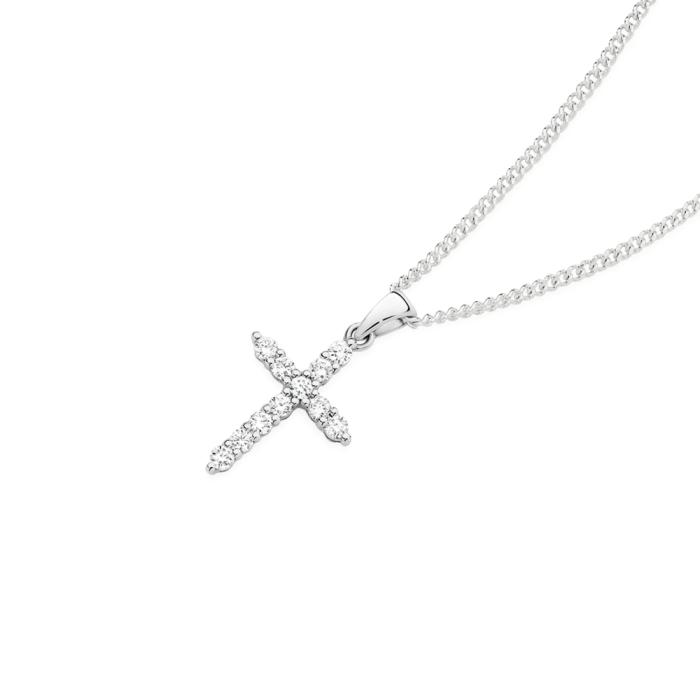 Alora 9ct White Gold 1/3 Carat TW Lab Grown Diamond Cross Pendant