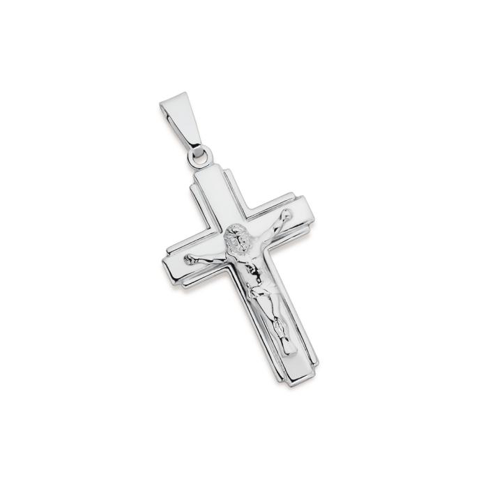 Sterling Silver 35mm Square Edge Crucifix Gents Pendant