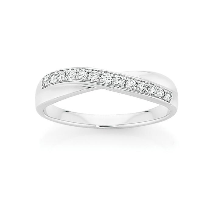 9ct White Gold Diamond Round Brilliant Cut Pave Set Crossover Band Total Diamond Weight =.20ct