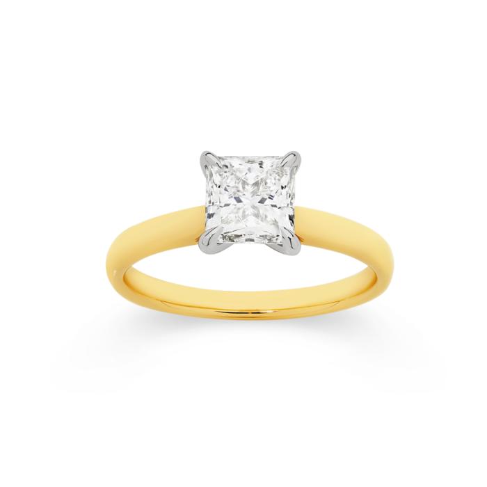 Alora 14ct Gold Lab Grown Diamond Princess Cut Certified 1 1/2 Carat Solitaire Ring