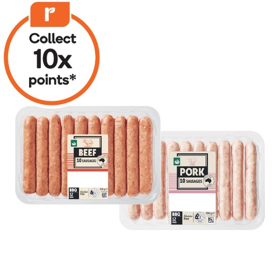 Woolworths Beef, Pork or Chicken Sausage Varieties 550g Pk 10