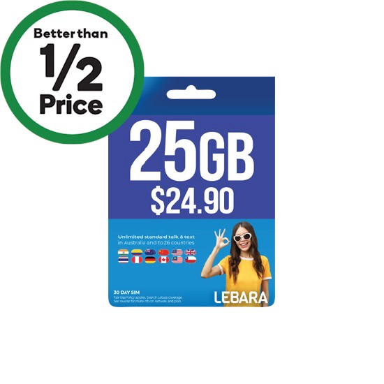 #For use in AU. 25GB standard data per 30 day cycle, activate by 16/3/26 (unless extended). Up to 200GB of unused data can be rolled over to next month when recharged with an eligible plan before expiry. T&Cs apply. Lebara $24.90 Starter Pack offer ends 13/1/26.