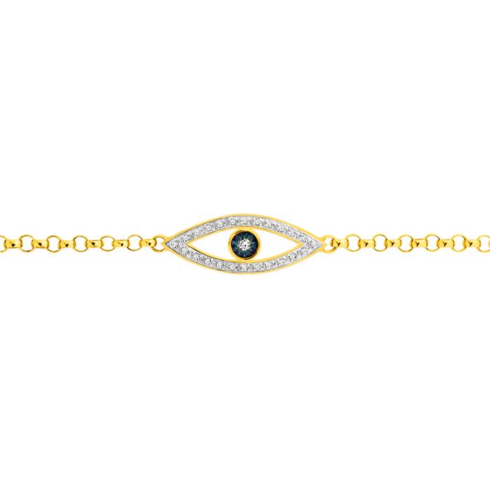 9ct Gold & Blue Rhodium Diamond Evil Eye ID Bracelet Total Diamond Weight = .15ct. 19cm in Length.