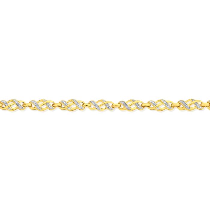 9ct Gold Diamond Love Knot Link Bracelet Approximately 18.5 cm in Length.