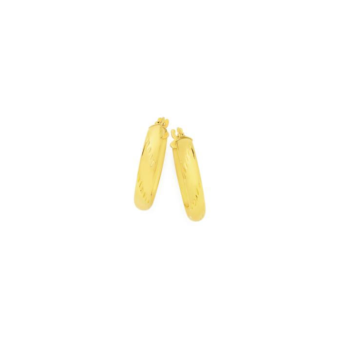 European Made 9ct Gold 15cm Diamond Cut Twist Hoop Earrings. Approximate Dimensions - 3mm Width x 15mm Inner Diameter.
