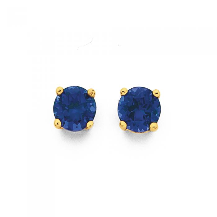 9ct Gold 5mm Created Sapphire Stud Earrings