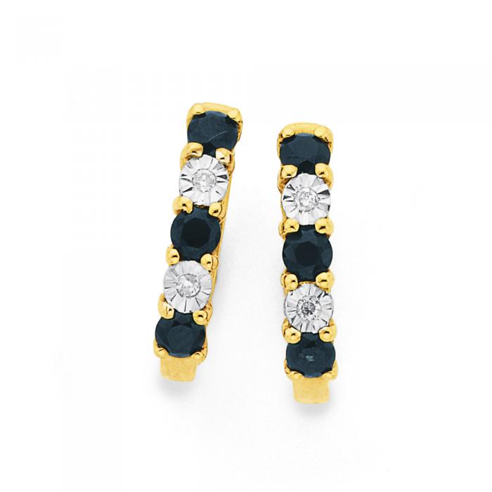 9ct Gold Black Sapphire & Diamond Huggie Earrings