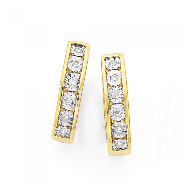 9ct Gold Diamond Miracle Set Huggie Earrings. External Size = Approximately 12mm x 3mm.