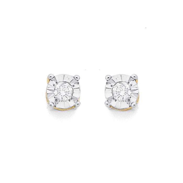 9ct Gold Diamond Miracle Set Stud Earrings, Size = Approx 4mm in Diameter