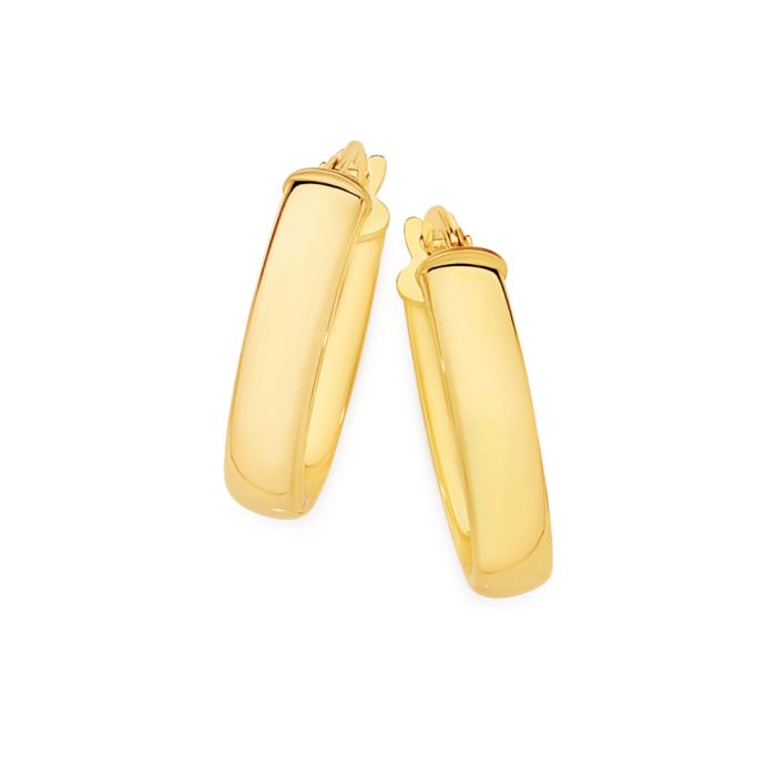 Italian Made 9ct Gold Half Round Oval Hoop Earrings. Approximate Dimensions - 10x15mm Inner Diameter, 4mm Width.