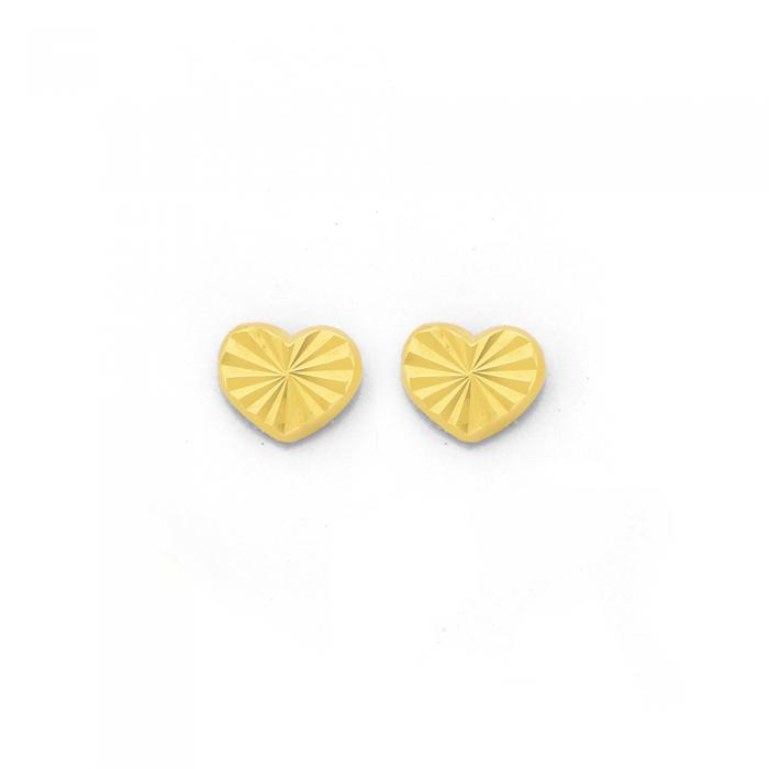 Italian Made 9ct Gold Diamond-cut Finish Open Back Heart Stud Earrings - Approximate Dimensions 5mm x 6mm.