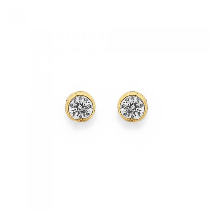 9ct Gold Round Cubic Zirconia Bezel Stud Earrings