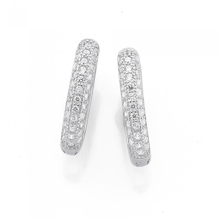 Sterling Silver Pave CZ Domed Huggie Earrings.1609079