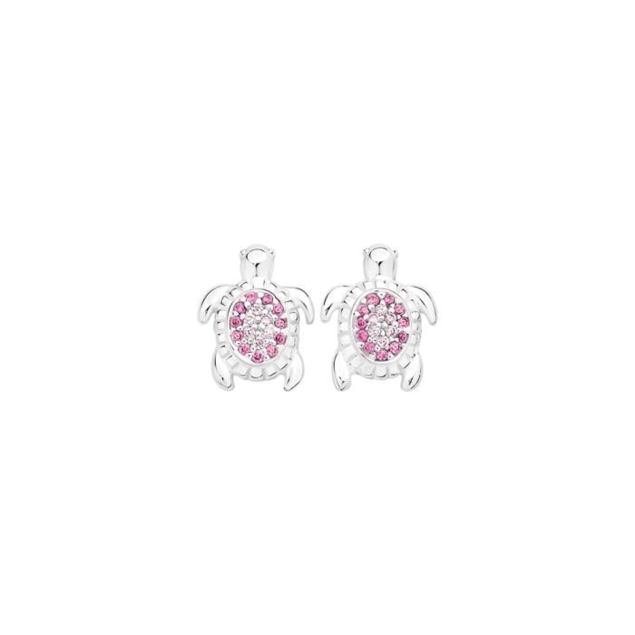 Sterling Silver Pave Synthetic Rose & Pink CZ Turtle Stud Earrings
