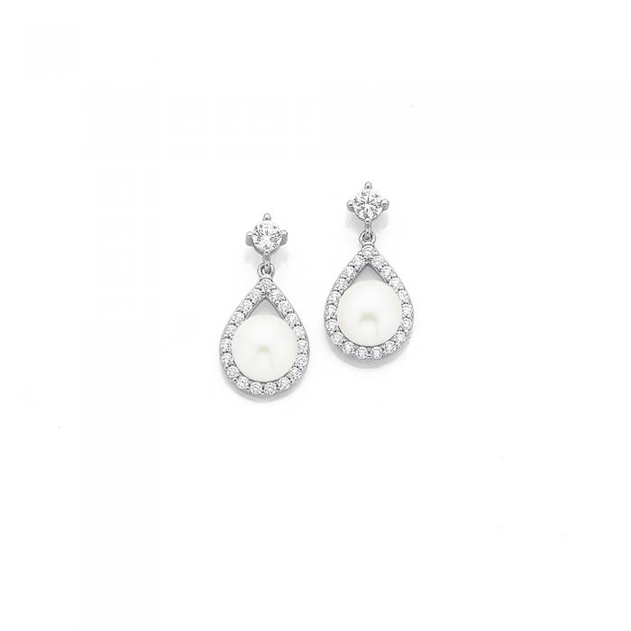 Sterling Silver Pearl & Cubic Zirconia Pear Drop Earrings