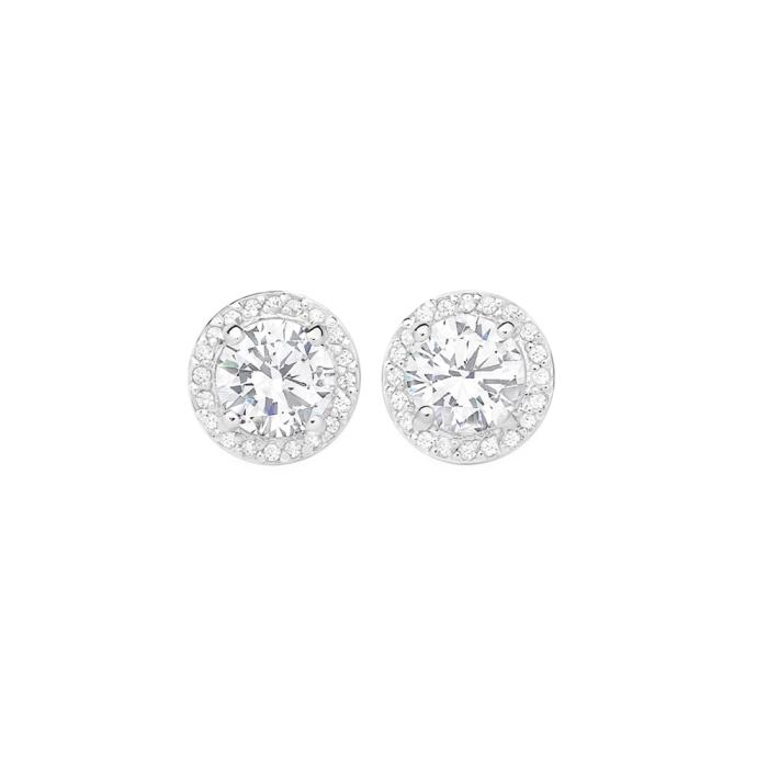 Sterling Silver Round CZ Cluster Stud Earrings.1609118