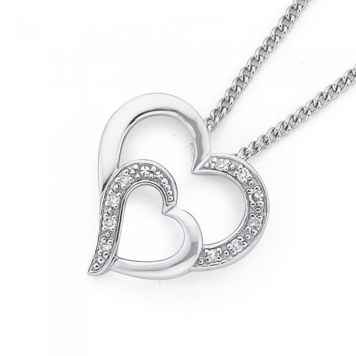 9ct White Gold Diamond Double Heart Pendant