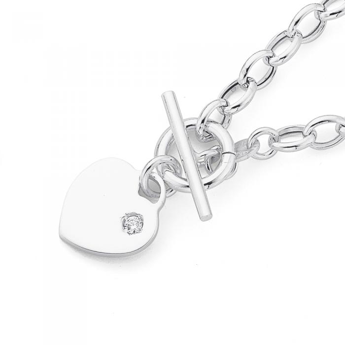 Sterling Silver Cubic Zirconia 45cm Heart Fob Belcher Necklace - Made In Italy