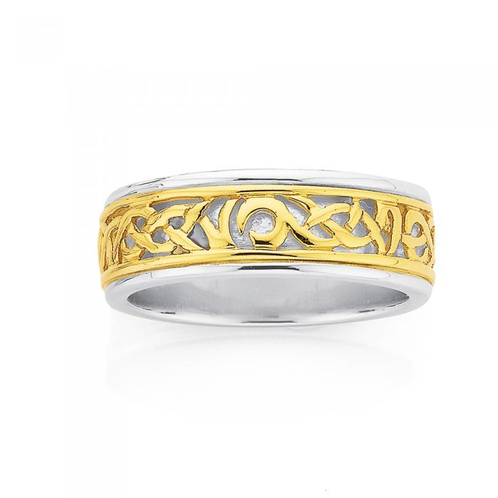 9ct Gold & Sterling Sterling Silver Celtic Pattern Gents Ring