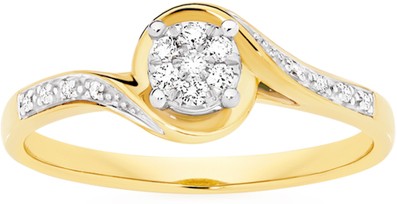 9ct Gold Diamond Round Brilliant Cut Cluster Shoulder Set Swirl Ring Total Diamond Weight =.10ct