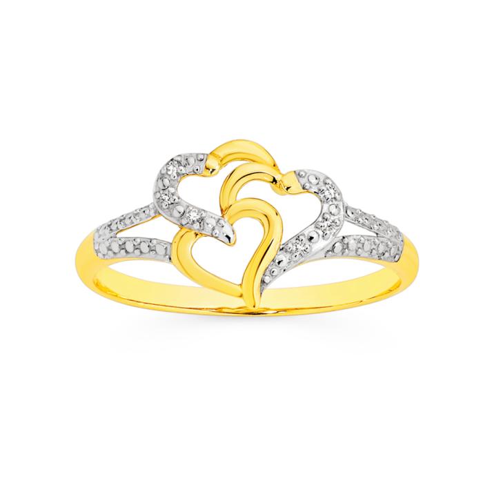 9ct Gold Diamond Triple Heart Split Shoulder Ring.8631928