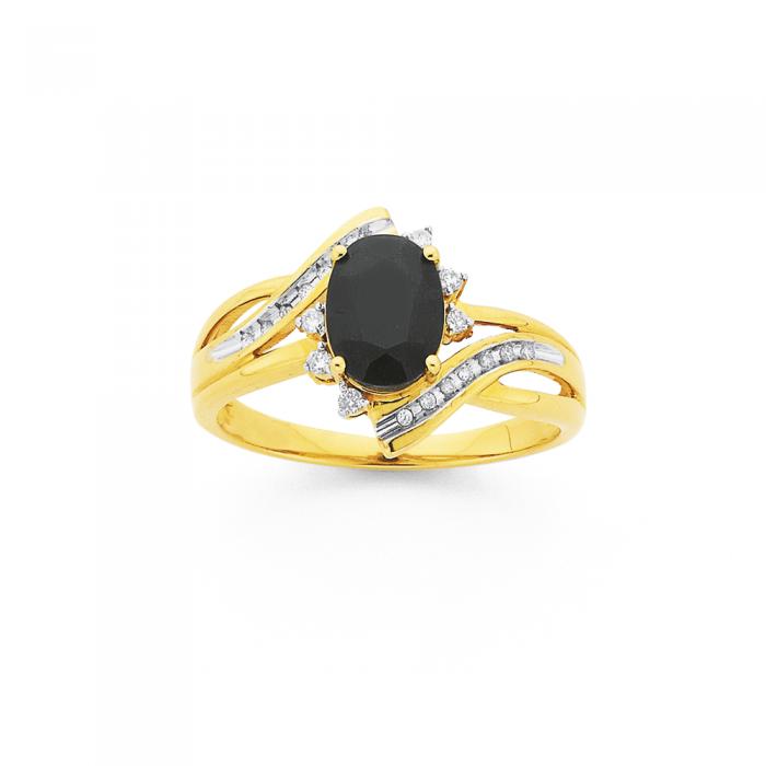 9ct Gold Sapphire & Diamond Oval Open Swirl Ring Total Diamond Weight =.10ct. Centre Stone Size = 8x6mm