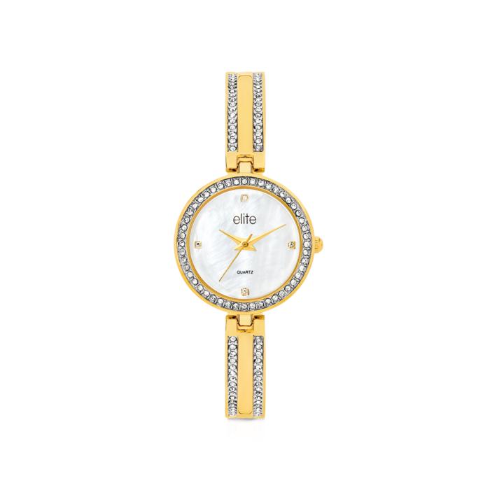 Refined and radiant, the Double Row Crystal watch is the epitome of understated elegance. With its slender gold-tone bracelet accented by twin rows of delicate crystals, this timepiece brings a graceful sparkle to your wrist without ever overpowering your look. The mother-of-pearl dial, framed by a circle of shimmering stones, exudes soft luxury, while minimalist hour markers and polished hands maintain a clean, modern aesthetic. Powered by precise quartz movement, is the perfect blend of form and functionideal for both everyday wear and special moments.