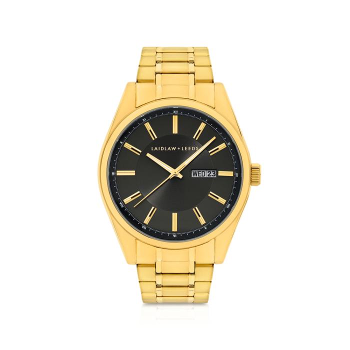 This stylish yet refined watch features a classic gold tone case and bracelet with a stormy grey dial. Perfect for professional settings as well as weekend wear.