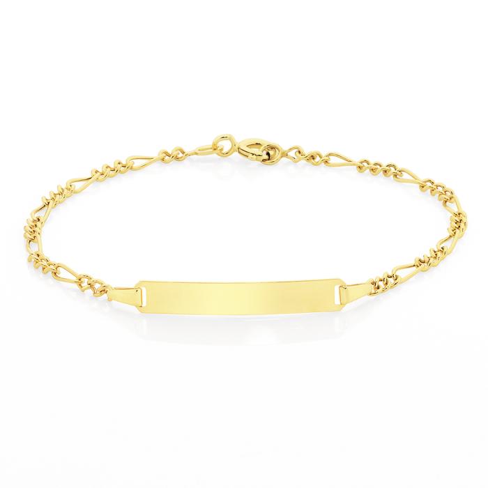 Italian Made 9ct Gold 15cm Hollow Figaro 3+1 Bracelet with Rectangular Engravable Identity Plate